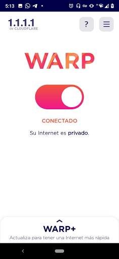 Comenzamos con esta aplicación que en principio la idea era solo usar el cambio de DNS para nuestro dispositivos móviles para agregar el 1.1.1.1 al equipo, y por ende mejorar la conexión del mismo, sin embargo cuenta con la opción de Warp y Warp+ que no es mas que un VPN para nuestro móvil completamente gratuito en su versión estándar, esta ultima siendo de pago.